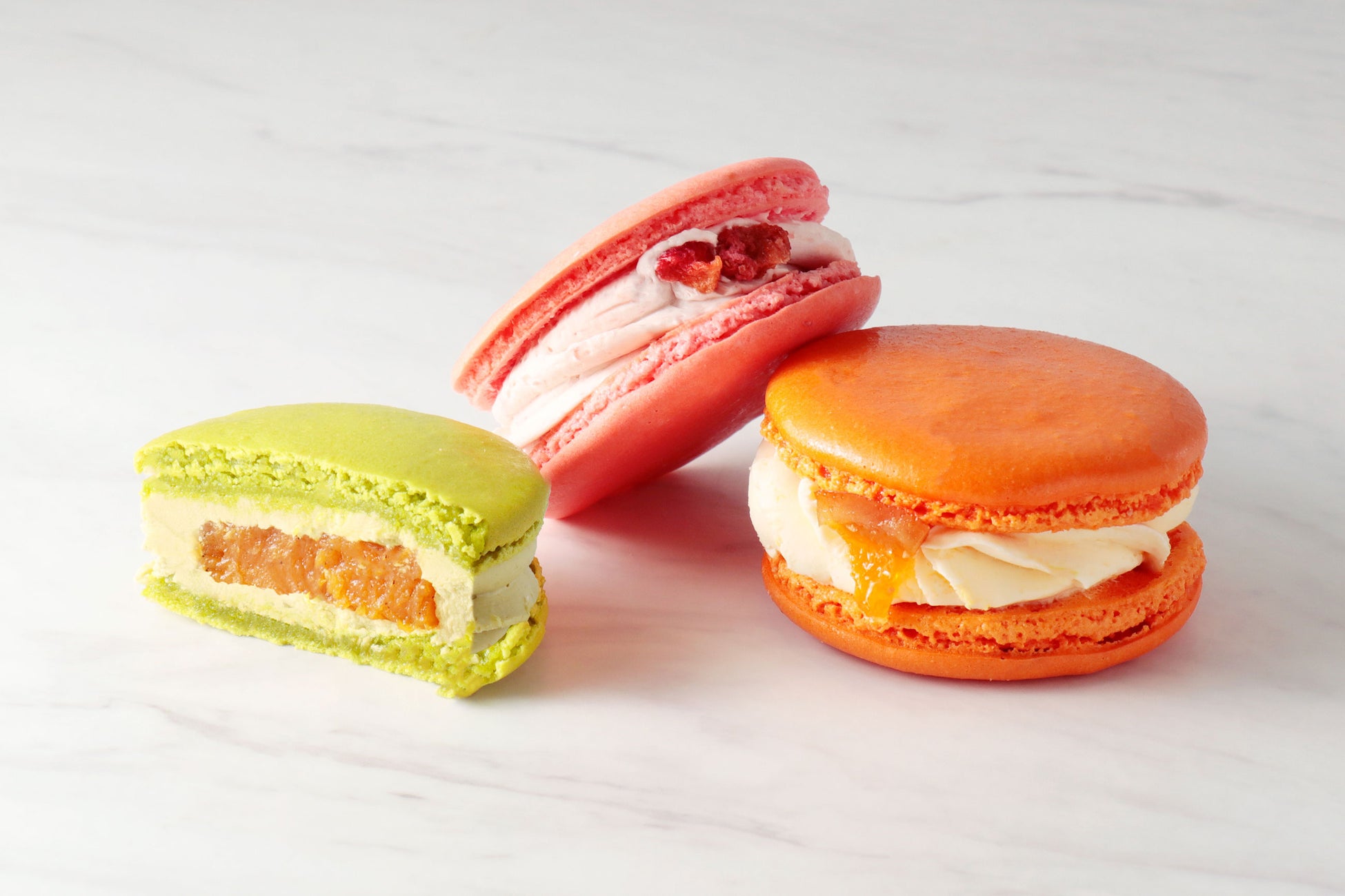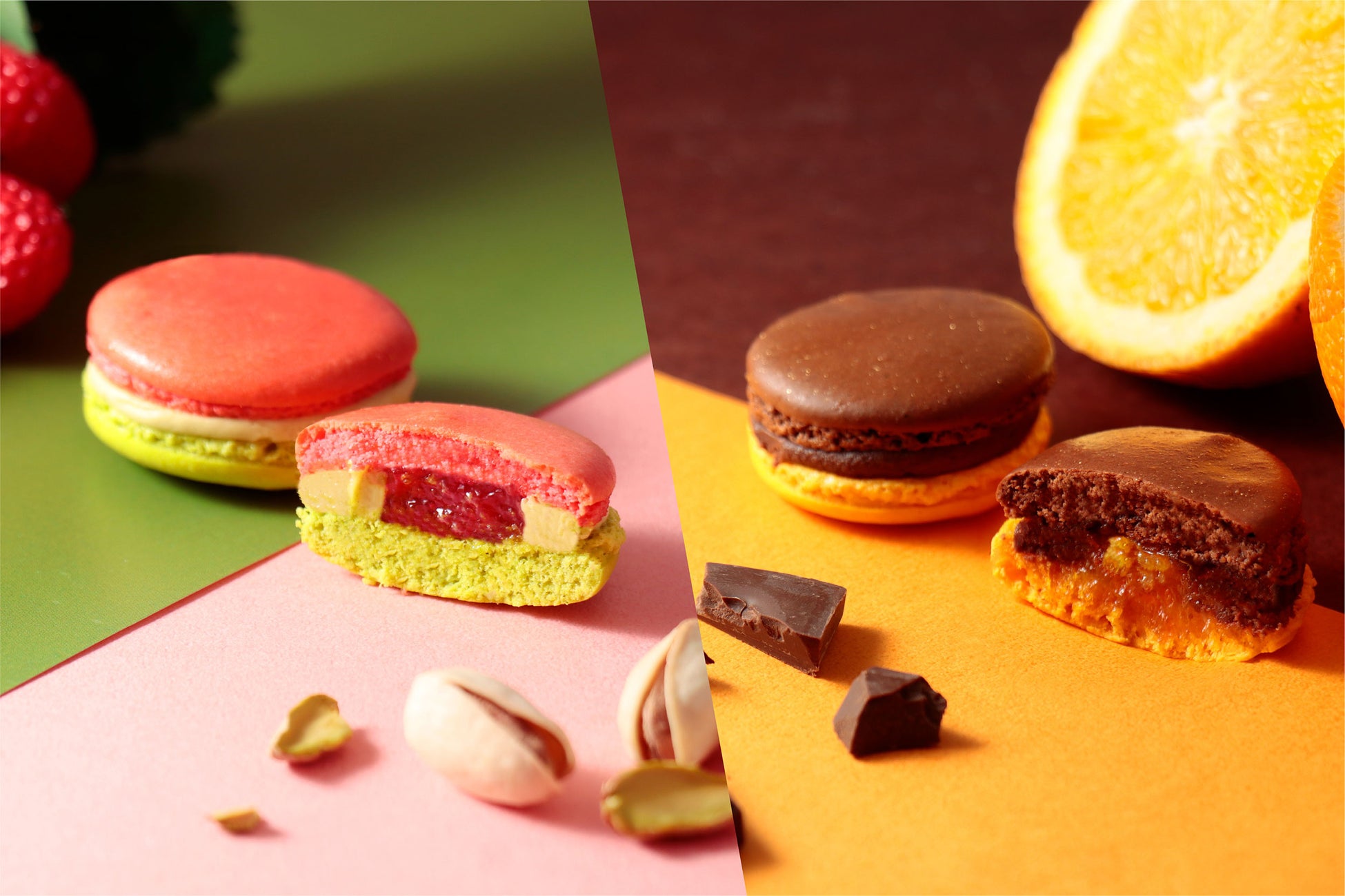 2つの素材をガナッシュやバタークリーム、コンフィチュールの組み合わせで表現した特別な「マカロン デュオ」