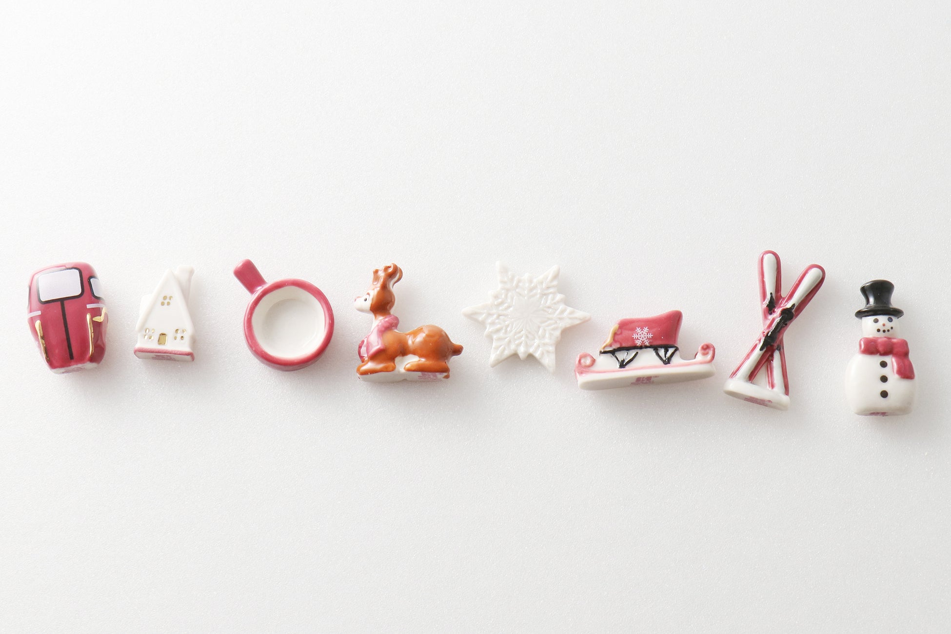 トナカイや雪の結晶、スキーのゴンドラ、雪だるまなどをモチーフにした8種類の中から1つ、フェーヴをお付けしています。