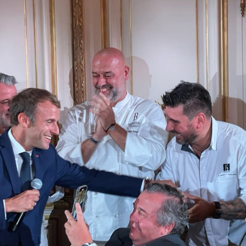 リヨンで開催された晩餐会"diner des grands chef"で、マクロン大統領にデザートを振る舞う