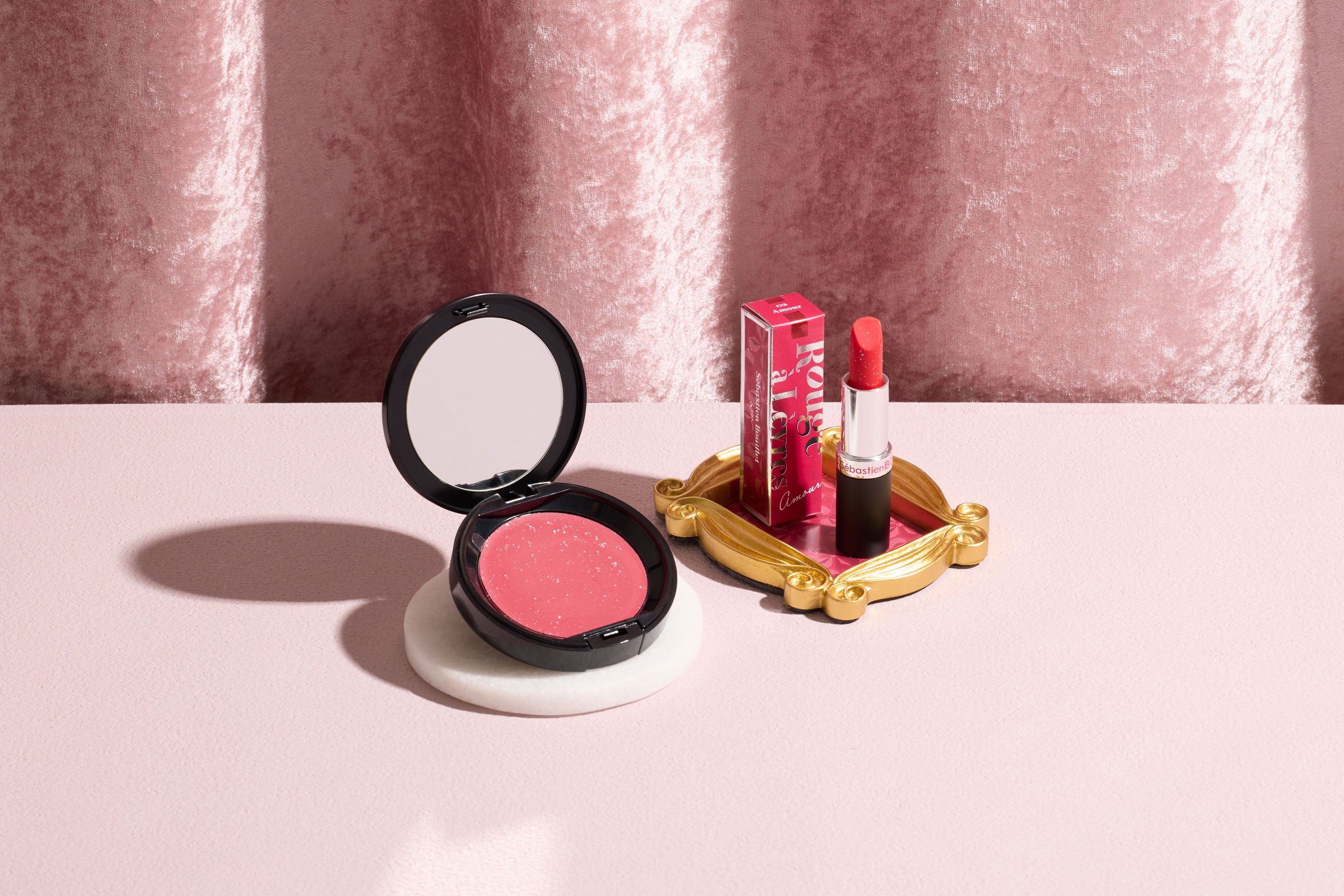 グラマラスな口紅をイメージしたルージュ型ショコラと、チークのような色鮮やかなタブレットショコラを組み合わせた、まるでコスメのような詰め合わせ。