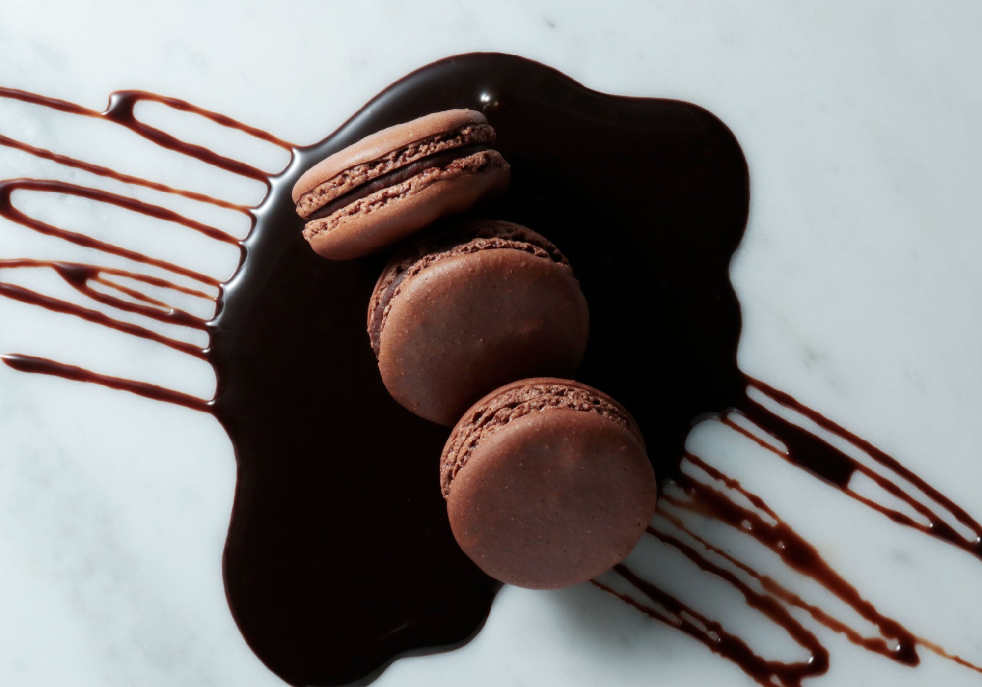 フランス産クーベルチュールを使用したビターチョコガナッシュをサンド。カカオの風味と香りを堪能できる、大人の味わいのマカロン。